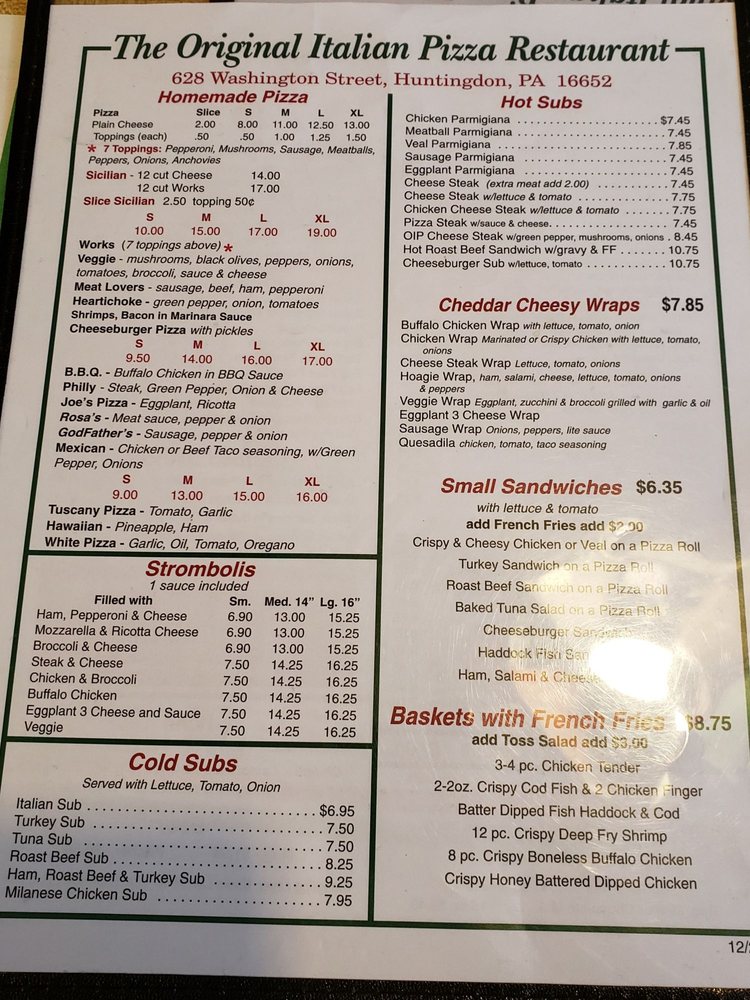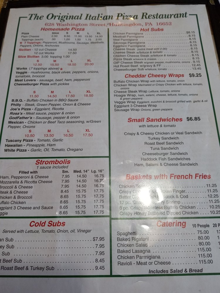 Welcome to Original Italian Pizza, where every dish celebrates authentic Italian flavors right in the heart of Huntingdon, PA. Nestled at 628 Washington St, this charming eatery is not just about pizza; it offers a diverse menu that tantalizes the palate.